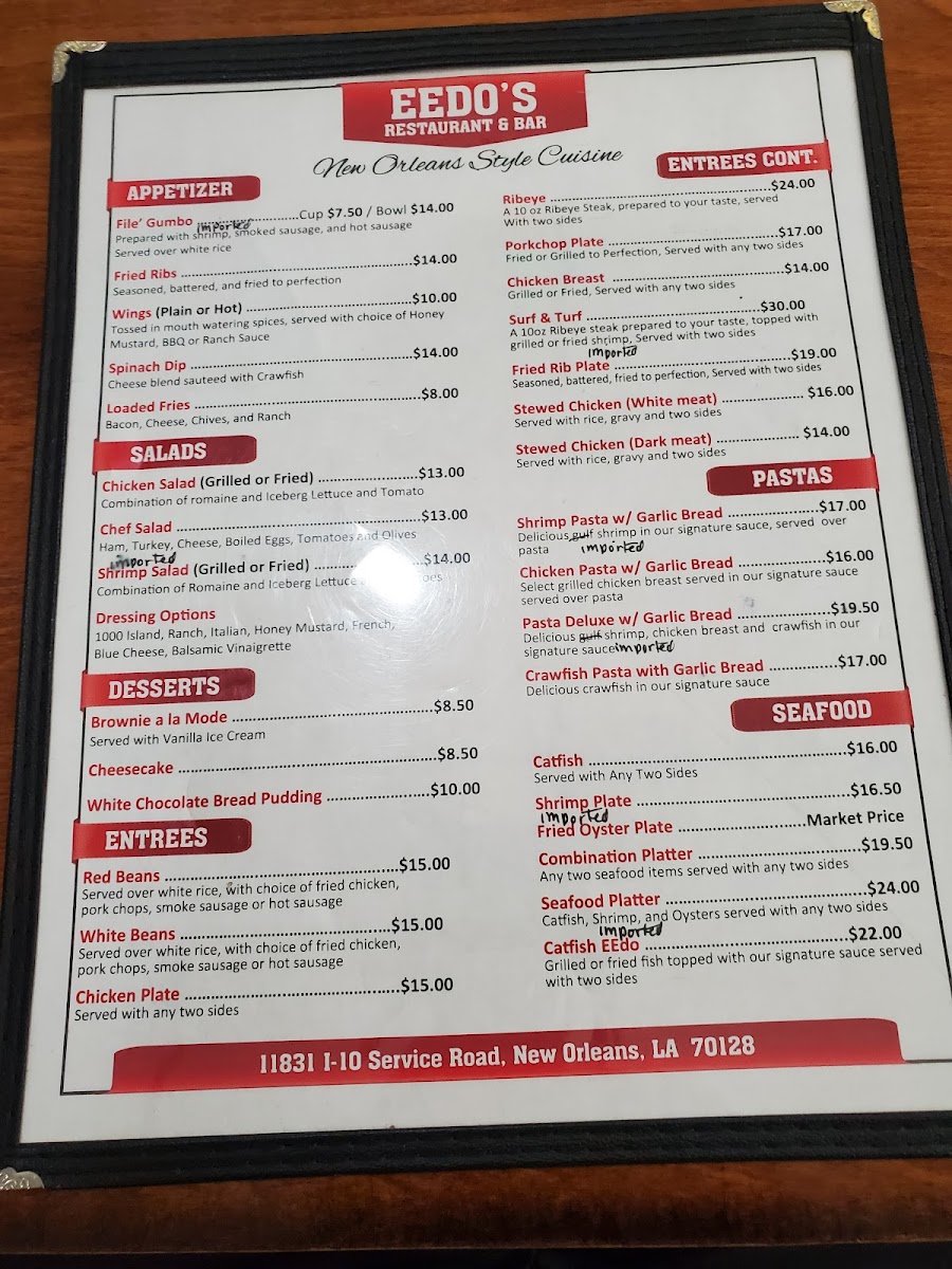 Eedo’s Restaurant Menu